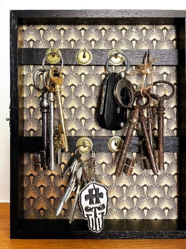 Ancienne boîte à clés restaurée et repeinte en noire.