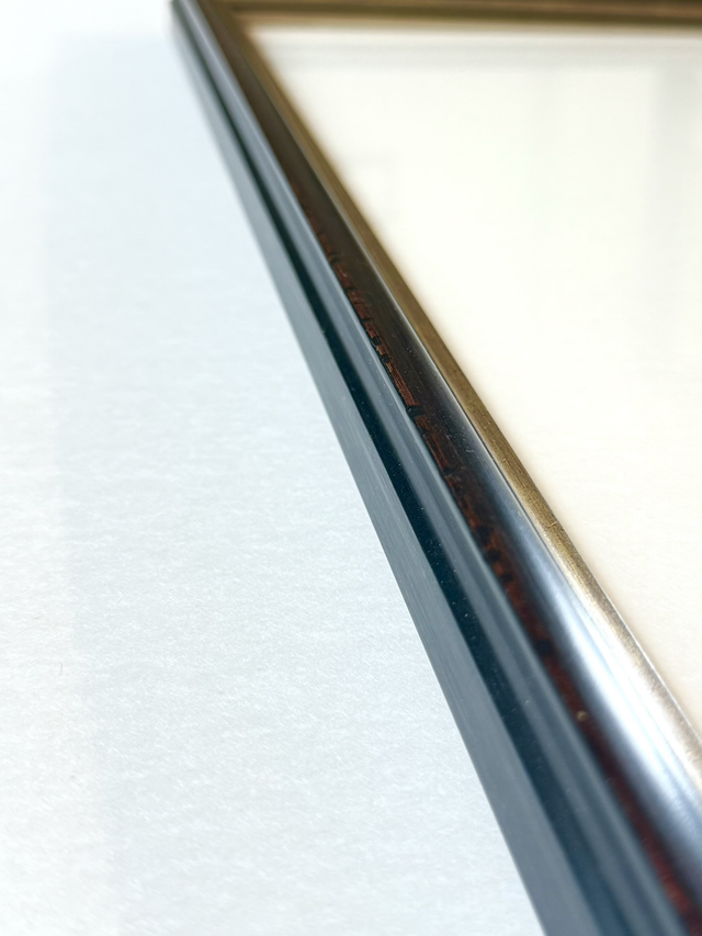 Cadre noir et doré fabriqué avec des baguettes neuves style cadre Napoleon.